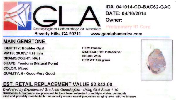 Natural Freeform Boulder Opal And Platinum Over Sterling Silver Pendant