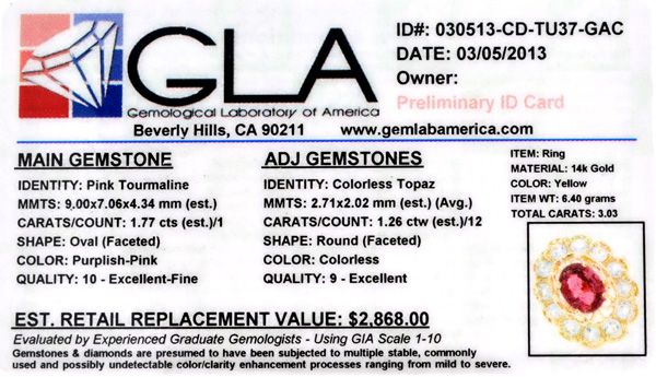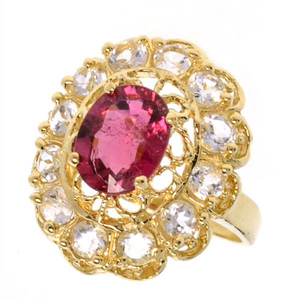 APP: 2.9k 14 kt. Gold, 1.77CT Pink Tourmaline and Topaz Ring