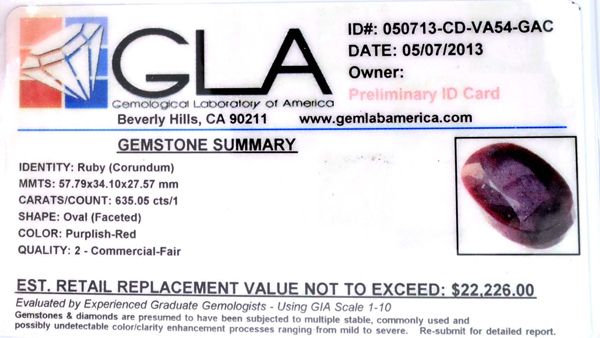 GovernmentAuction.com utilizes Retail Replacement Value Appraisals, which are the most common. These types of evaluations are written for insurance needs. This would be the cost to replace the jewelry, with an item of equal quality and kind, considered to be the current market price or the replacement value. This type of appraisal is done to protect you in the event of damage or loss of a valuable item. Our appraisals are conducted by and independent 3rd Party appraisal firm that utilizes Certified GIA Gemologist, if more information is needed you are welcome to contact them directly: Gemological Laboratory of America- info@gemlabamerica.com. Appraisals should be used for verification of gemstone and/or metal weight, size, and grade only, not actual value. Appraisal value should be considered for insurance purposes only, not actual value, as price varies greatly from retail locations through-out the world. Items should not be purchased with the expectation to resell for appraisal price or for profit.