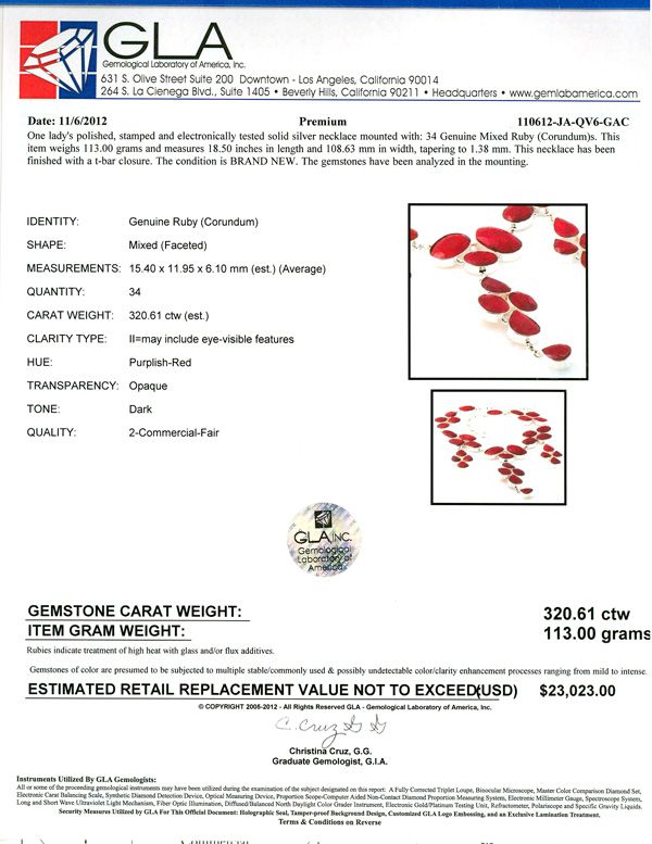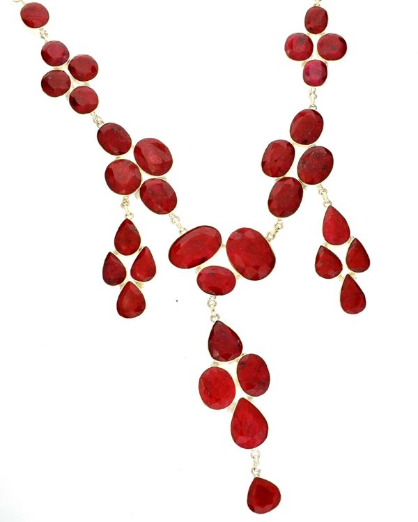 320.61CT Mixed Cut Ruby and Sterling Silver Necklace
