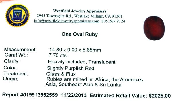 7.78CT Oval Cut Ruby Gemstone
