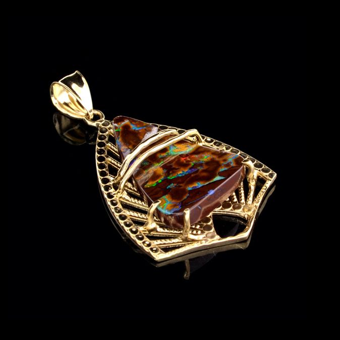 14 kt. Gold, Freeform Cut Boulder Opal Pendant