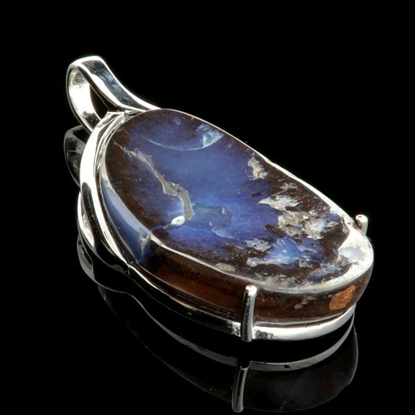 Natural Freeform Boulder Opal And Platinum Over Sterling Silver Pendant