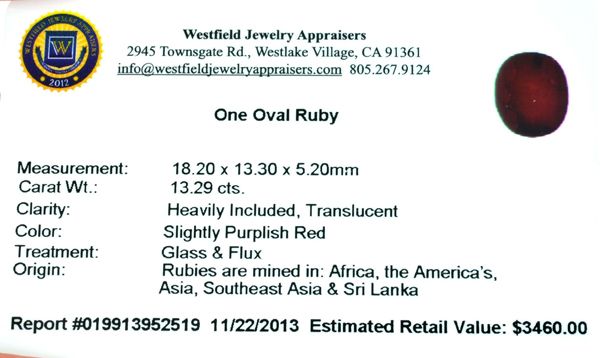 GovernmentAuction.com utilizes Retail Replacement Value Appraisals, which are the most common. These types of evaluations are written for insurance needs. This would be the cost to replace the jewelry, with an item of equal quality and kind, considered to be the current market price or the replacement value. This type of appraisal is done to protect you in the event of damage or loss of a valuable item. Our appraisals are conducted by and independent 3rd Party appraisal firm that utilizes Certified GIA Gemologist, if more information is needed you are welcome to contact them directly: Gemological Laboratory of America- info@gemlabamerica.com. Appraisals should be used for verification of gemstone and/or metal weight, size, and grade only, not actual value. Appraisal value should be considered for insurance purposes only, not actual value, as price varies greatly from retail locations through-out the world. Items should not be purchased with the expectation to resell for appraisal price or for profit.