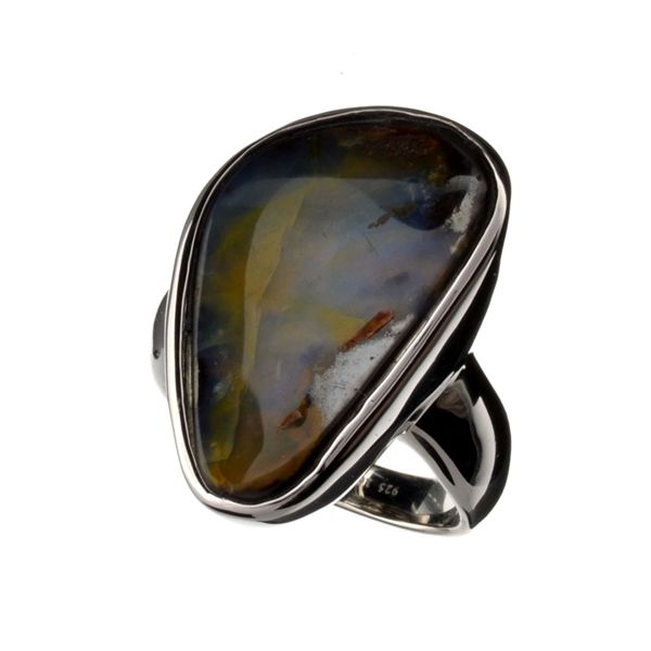 Natural Freeform Boulder Opal And Platinum Over Sterling Silver Ring
