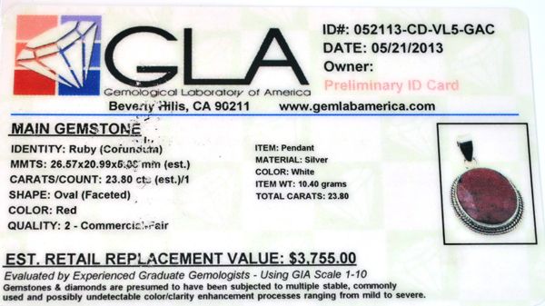 23.80CT Oval Cut Ruby and Sterling Silver Pendant