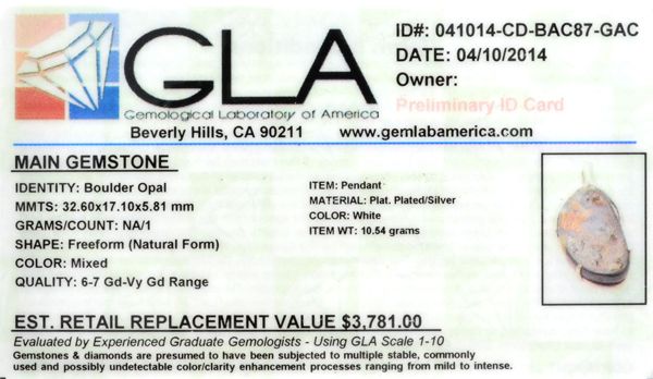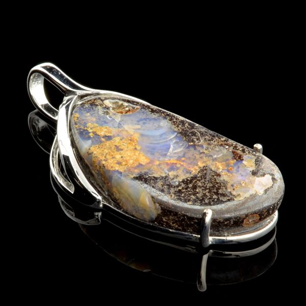Natural Freeform Boulder Opal And Platinum Over Sterling Silver Pendant