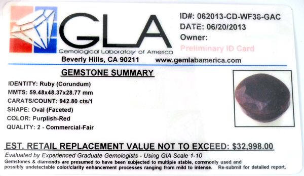 942.80CT Oval Cut Ruby Gemstone