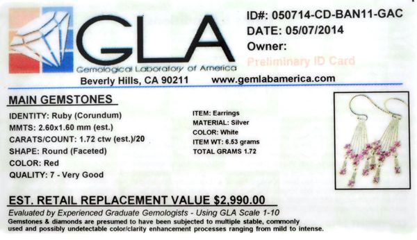 1.72CT Round Cut Ruby And Sterling Silver Earrings