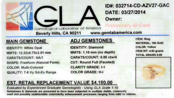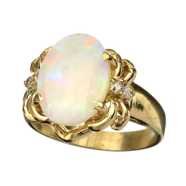 APP: 4.2k 14 kt. Gold, White Opal and Diamond Ring