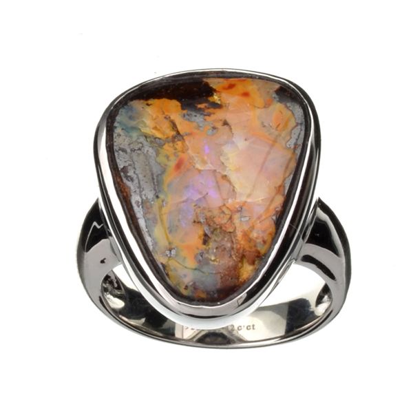 Natural Freeform Boulder Opal And Platinum Over Sterling Silver Ring