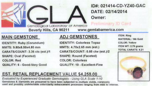 14 kt. Gold, 3.65CT Ruby And Topaz Ring