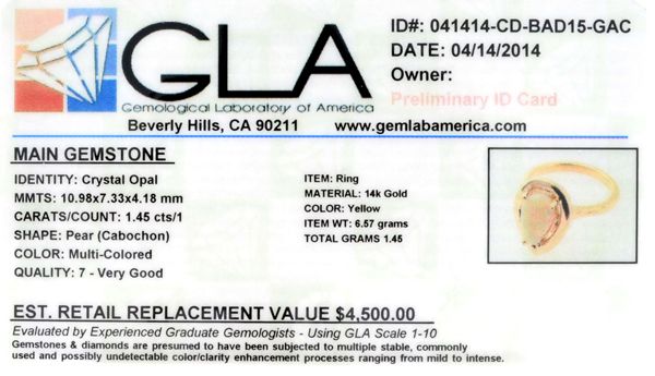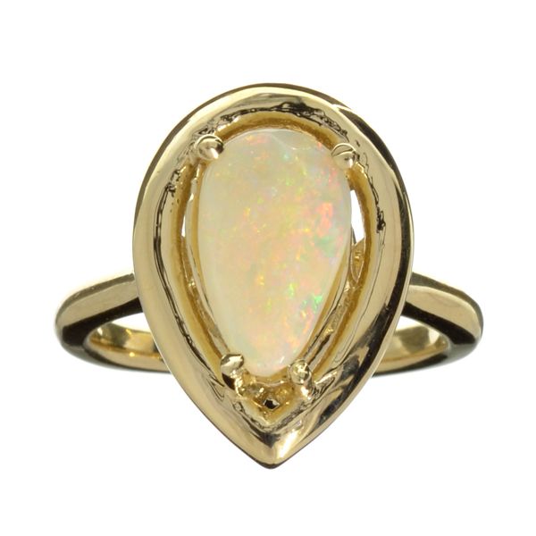 14 kt. Gold, 1.45CT Pear Cut Cabochon Crystal Opal Ring