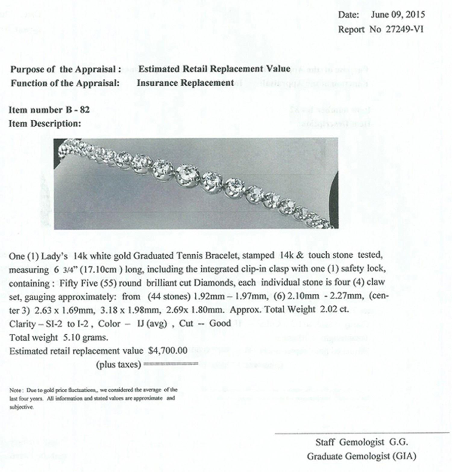 *Fine Jewelry 14 kt. White Gold, 2.02CT Round Brilliant Cut Diamond Bracelet (VGN B-82) (Vault V)