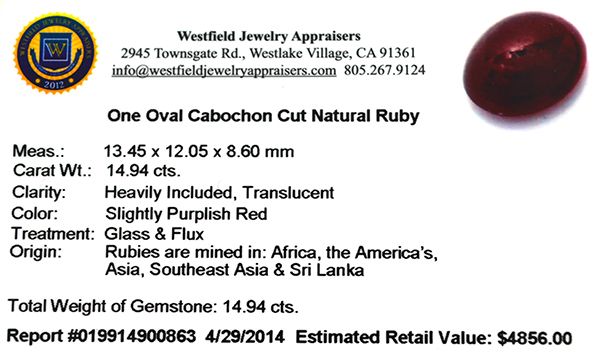 14.94CT Oval Cut Cabochon Ruby Gemstone