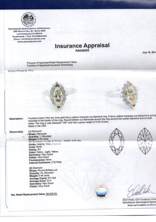 GovernmentAuction.com utilizes Retail Replacement Value Appraisals, which are the most common. These types of evaluations are written for insurance needs. This would be the cost to replace the jewelry, with an item of equal quality and kind, considered to be the current market price or the replacement value. This type of appraisal is done to protect you in the event of damage or loss of a valuable item. Our appraisals are conducted by and independent 3rd Party appraisal firm that utilizes Certified GIA Gemologist, if more information is needed you are welcome to contact them directly: Gemological Laboratory of America- info@gemlabamerica.com. Appraisals should be used for verification of gemstone and/or metal weight, size, and grade only, not actual value. Appraisal value should be considered for insurance purposes only, not actual value, as price varies greatly from retail locations through-out the world. Items should not be purchased with the expectation to resell for appraisal price or for profit.
