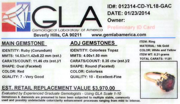 APP: 4k 14 kt. Gold, 11.46CT Ruby and Topaz Ring