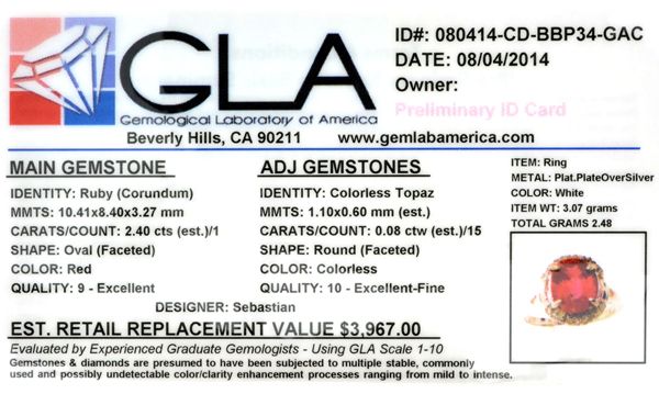 Designer Sebastian 2.40CT Ruby And Topaz Platinum Over Sterling Silver Ring
