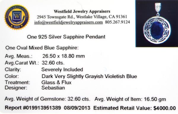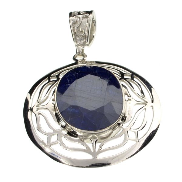 Designer Sebastian 32.60CT Oval Mixed Cut Blue Sapphire and Sterling Silver Pendant