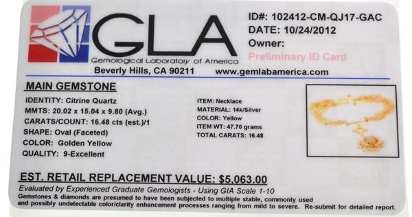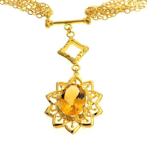 16.48CT Oval Cut Citrine 14 kt. Gold Over Sterling Silver Necklace