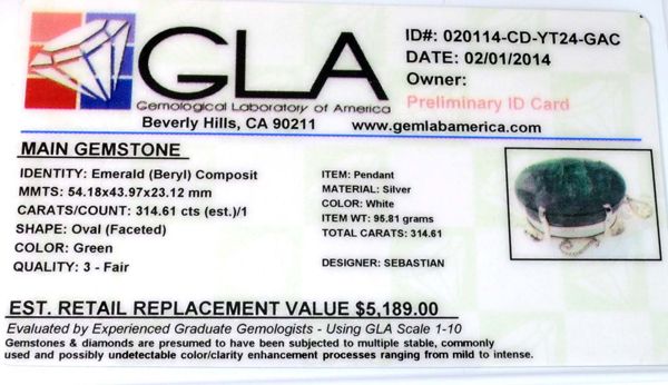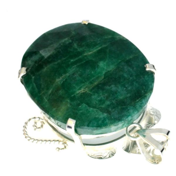 Designer Sebastian 314.61CT Oval Cut Green Beryl Emerald and Sterling Silver Pendant