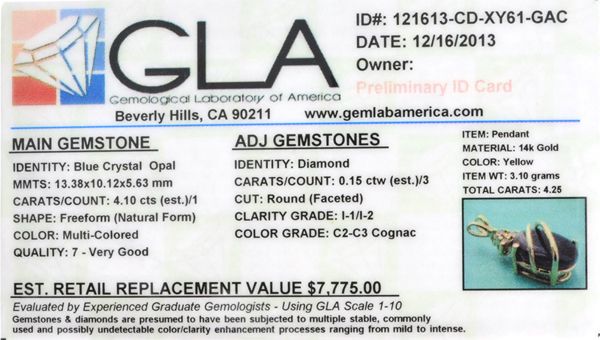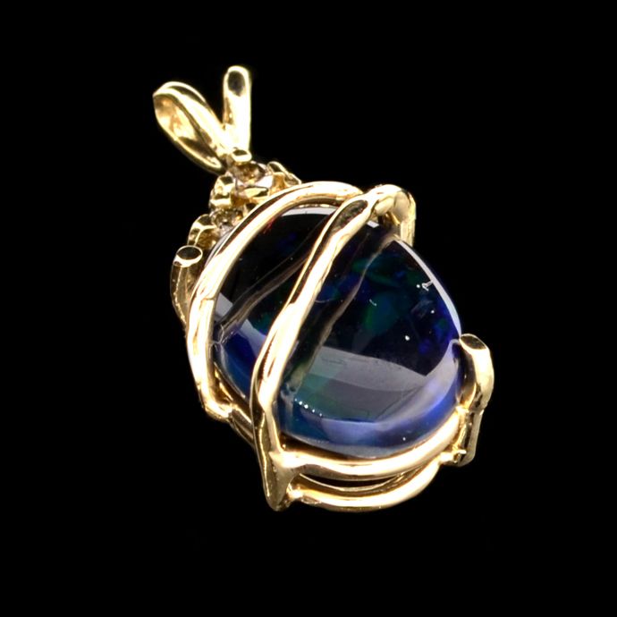 14 kt. Gold, Blue Crystal Opal And Diamond Pendant