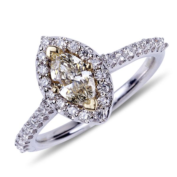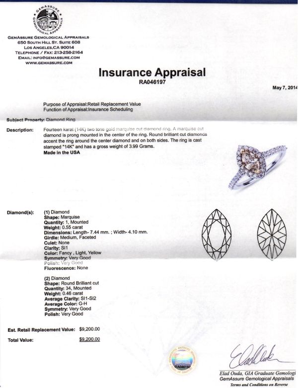 APP: 9.2k *14 kt. Two Tone Gold, 0.55CT Marquise Cut Diamond And 0.46CT Diamond Ring