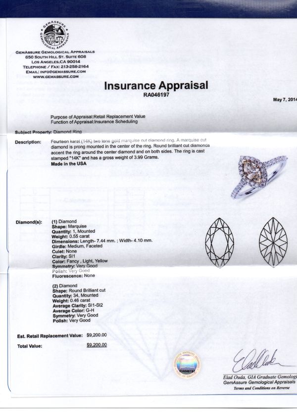 GovernmentAuction.com utilizes Retail Replacement Value Appraisals, which are the most common. These types of evaluations are written for insurance needs. This would be the cost to replace the jewelry, with an item of equal quality and kind, considered to be the current market price or the replacement value. This type of appraisal is done to protect you in the event of damage or loss of a valuable item. Our appraisals are conducted by and independent 3rd Party appraisal firm that utilizes Certified GIA Gemologist, if more information is needed you are welcome to contact them directly: Gemological Laboratory of America- info@gemlabamerica.com. Appraisals should be used for verification of gemstone and/or metal weight, size, and grade only, not actual value. Appraisal value should be considered for insurance purposes only, not actual value, as price varies greatly from retail locations through-out the world. Items should not be purchased with the expectation to resell for appraisal price or for profit.