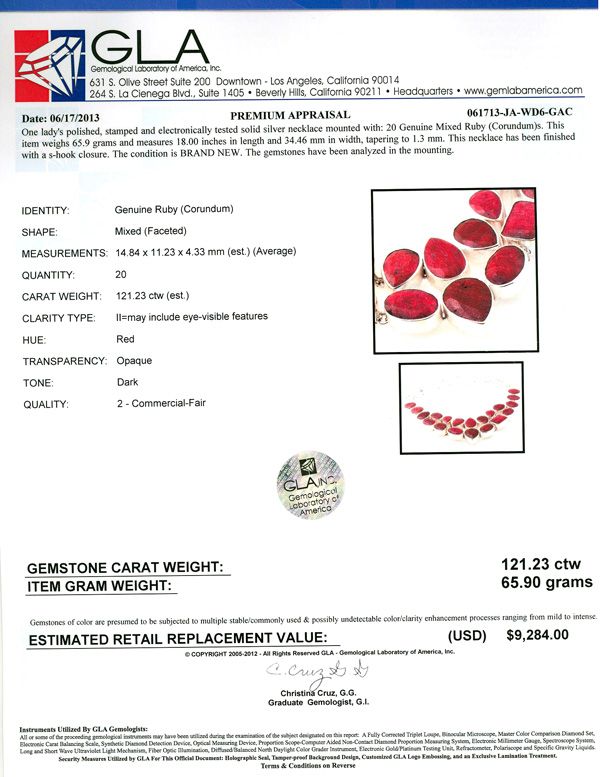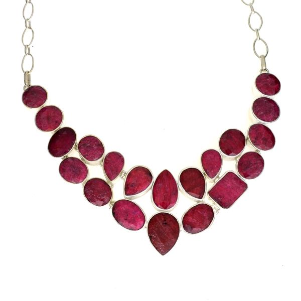 121.23CT Mixed Cut Ruby and Sterling Silver Necklace