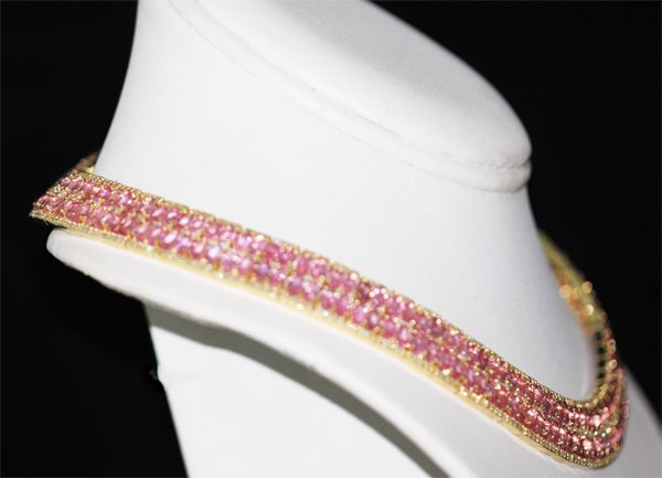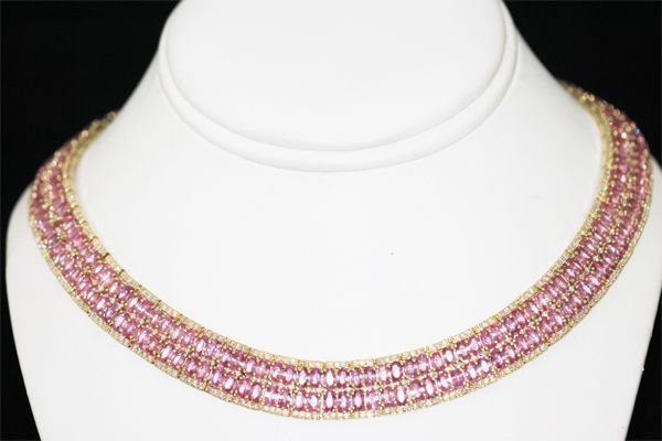 APP $90000 14K GOLD PINK SAPPHIRE NECKLACE **|**|** APP $90000 14K GOLD PINK SAPPHIRE NECKLACE; PINKSAPPHIRE 75.00 CTW; DIAMOND 7.0 CTW; GOLD 14K YELLOW 71.0 GRAMS ; MSRP: $0