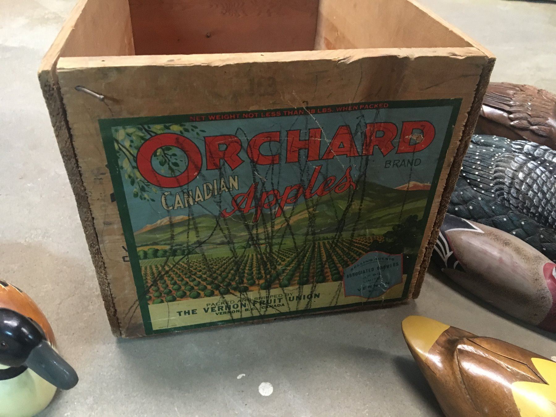 APPLE CRATE WITH DUCK DECOR AND DECOY