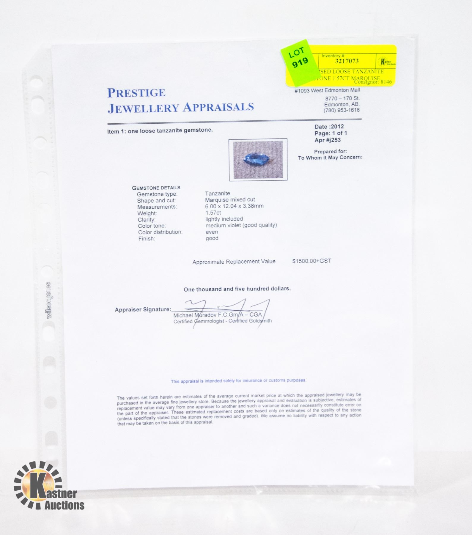 MIXED CUT, LIGHTLY INCLUDED, MEDIUM VIOLET, EVEN COLOR DISTRIBUTION, GOOD FINISH, MICHAEL MURADOV APPRAISED, APPROXIMATE REPLACEMENT VALUE $1500.00 **ALL ITEMS MUST BE REMOVED BY 5PM SATURDAY, JUNE 8TH 2024. ALL REMAINING ITEMS WILL BE SUBJECT TO A $6.00 PER DAY STORAGE CHARGE. ANY ITEMS REMAINING AFTER MONDAY, JUNE 24TH 2024 WILL BE CONSIDERED FORFEITED. NO REFUNDS WILL BE ISSUED FOR FORFEITED ITEMS. TO SCHEDULE A PICK UP APPOINTMENT CLICK HERE