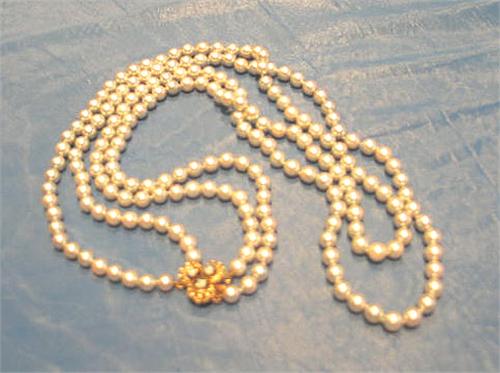APPROX. 26" DOUBLE STRAND PEARL NECKLACE W/(3) OPALS