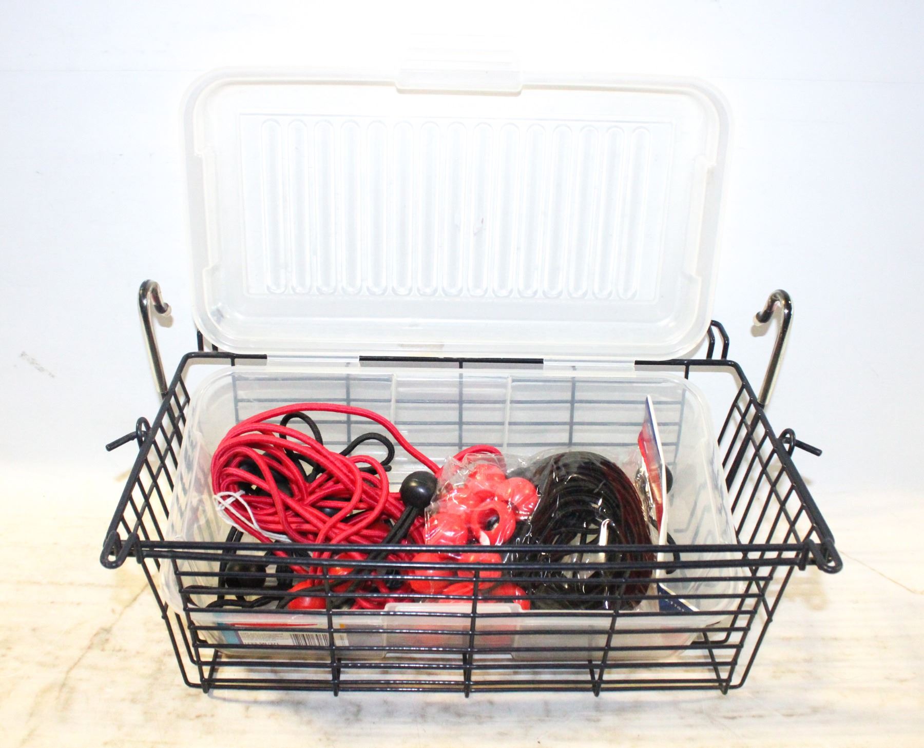 APPROX. 40 BALL BUNGIES AND BIKE BASKET