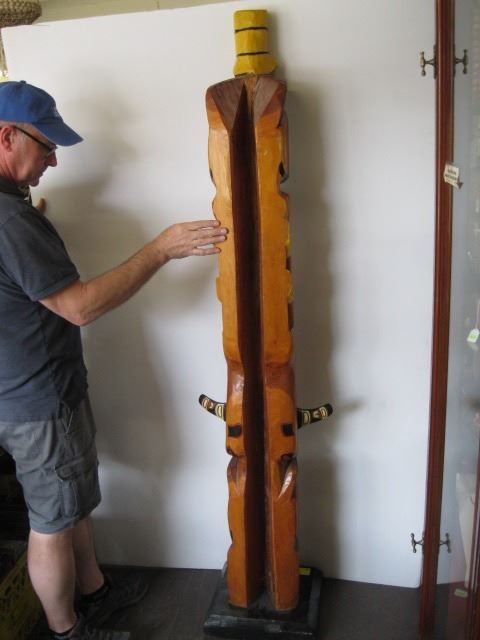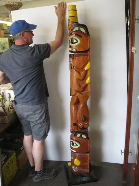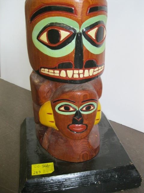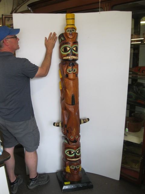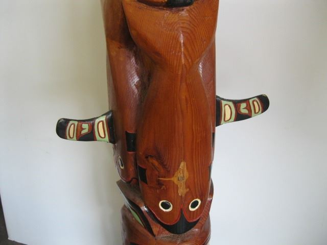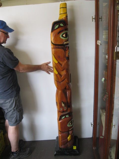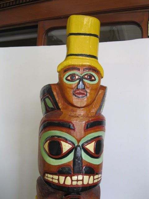 APPROX. 6' CARVED TOTEM POLE BY WILLIAM GEORGE JEFFREY, HIGH CHIEF OF THE LAX-KW'ALAAMS, PORT SIMPSON