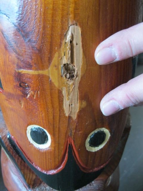 APPROX. 6' CARVED TOTEM POLE BY WILLIAM GEORGE JEFFREY, HIGH CHIEF OF THE LAX-KW'ALAAMS, PORT SIMPSO