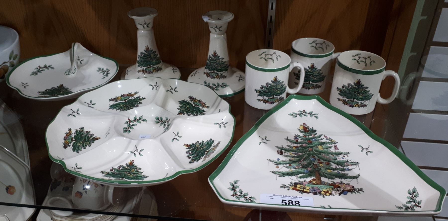 APPROX 8 PIECES SPODE CHRISTMAS TREE SERVING DISHES