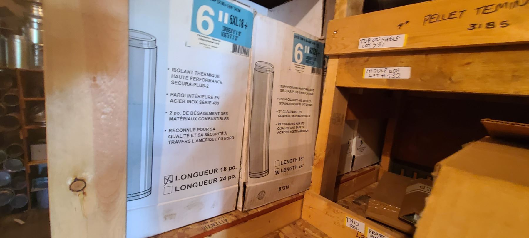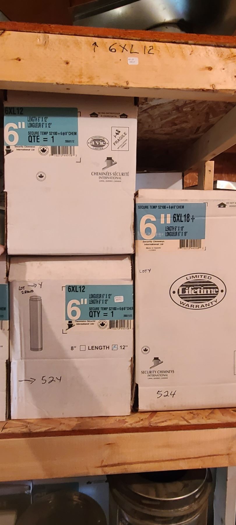 APPROX 9 PCS 6" DOUBLE WALLED/ INSULATED STOVE PIPES (5 X 24"./ 2X 18"/ 2 X 12")