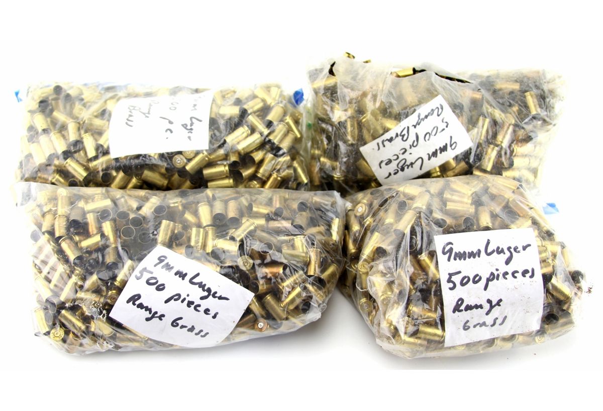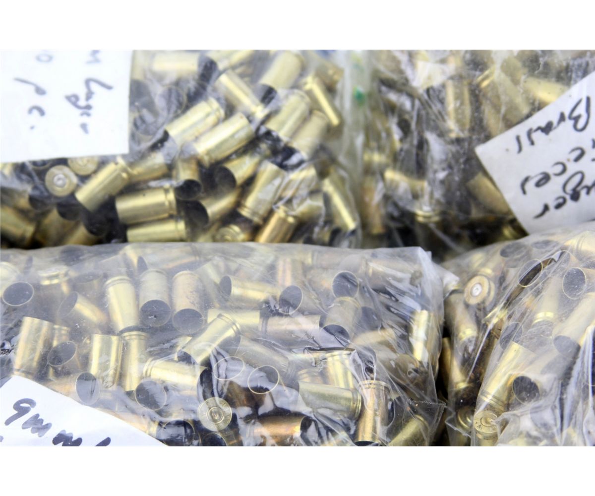 APPROXIMATELY 2000 9MM EMPTY BRASS FOR RELOADING Approximately 2000 empty 9mm Luger brass casings for re-loading. Old primers still present. Condition: