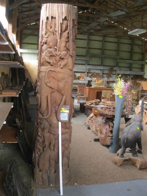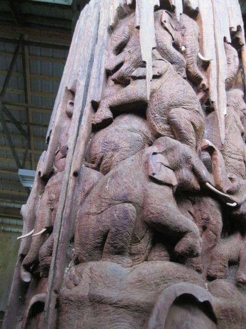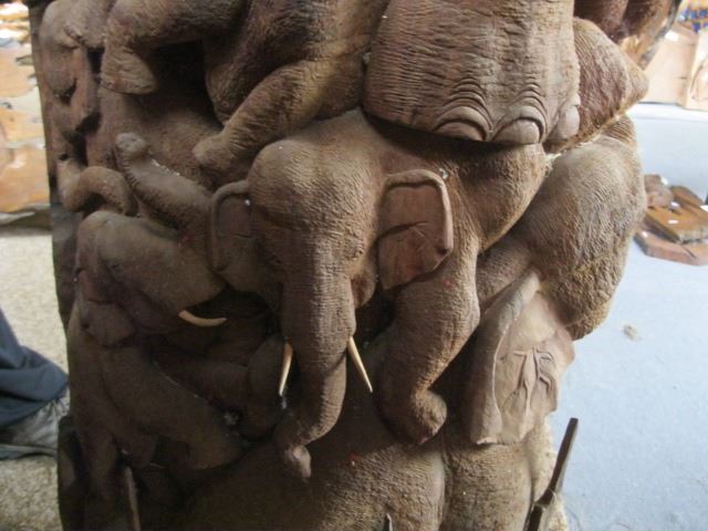 APPROXIMATELY 9'X2' CARVING WITH THE ELEPHANTS