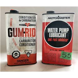 GR OF 2, MOTOMASTER 20 OZ TINS. GUM-RID & WATER PUMP LUBRICANT