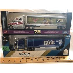 GR OF 2, DIE CAST TRACTOR TRAILERS - CANADIAN TIRE, LABATT BLUE - 1 / 64 SCALE