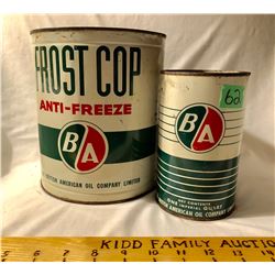 GR OF 2, BA TINS. 1 GAL FROST COP & 1 QT MOTOR OIL - FULL.