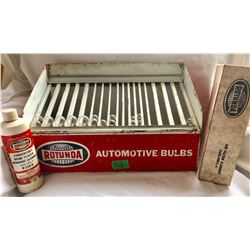 GR OF 3, ROTUNDA TIN BULB DISPLAY, PLASTIC WINDOW CLEANER BOTTLE, AIR FILTER.