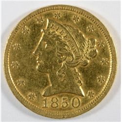 1850-C $5.00 LIBERTY GOLD AU, VERY NICE STRIKE FOR CHARLOTTE MINT! RARE!157 - 1850-C $5.00 LIBERTY GOLD AU, VERY NICE STRIKE FOR CHARLOTTE MINT! RARE!