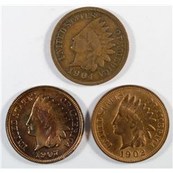 INDIAN ONE CENTS: 1904 XF, 1907 MS62, 1902 MS62166 - INDIAN ONE CENTS: 1904 XF, 1907 MS62, 1902 MS62