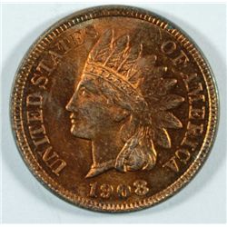 1908 INDIAN ONE CENT MS64 RED167 - 1908 INDIAN ONE CENT MS64 RED