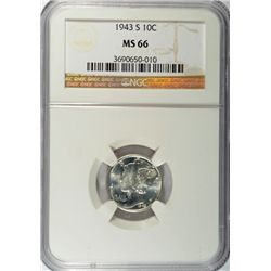 1943 S MERCURY DIME NGC MS66 SUPER179 - 1943 S MERCURY DIME NGC MS66 SUPER