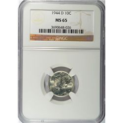 1944 D MERCURY DIME NGC MS65 GEM169 - 1944 D MERCURY DIME NGC MS65 GEM