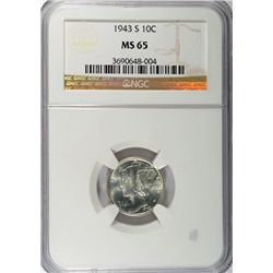 1943 S MERCURY DIME NGC MS65 GEM170 - 1943 S MERCURY DIME NGC MS65 GEM